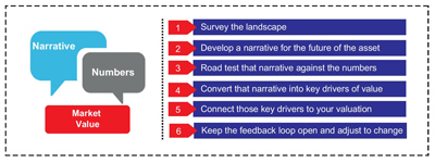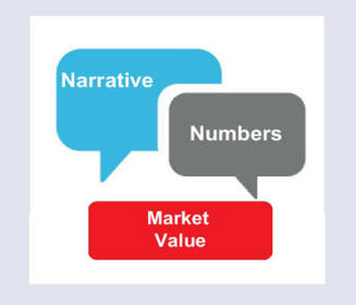 One school of thought (left brain) suggests value is driven solely by the numbers and therefore number crunchers can calculate market value with formulas and a spreadsheet. An alternate approach (right brain) is to look at the underlying story or narrative behind the asset and use storytelling to come up with a valuation.