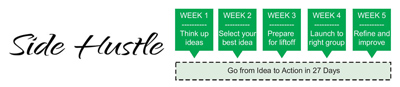 The Side Hustle Plan is all about taking action to go from idea to income in 27 days or less. To achieve that, you don't need to spend any money. Nor do you need an MBA or any employees, assistants or business partners. All you do need is a commitment to act and a willingness to commit no more than an hour a day to growing your side hustle. You'll be amazed at how simple it is to turn your idea into income when you follow the plan.